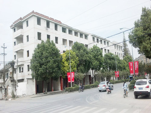 为配合推动德清县三改一拆工作顺利进行,浙江物产京安爆破工程有限公司组织了强有力的施工队伍,精心设计,严密施工。为确保爆破效果和爆破作业安全,设计方案中采用了毫秒延期技术,使大楼爆破后逐栋逐排逐跨分段延期触地,既有助于楼体倾倒触地后的充分解体,也极大的降低了塌落震动影响。同时,在精确控制药量的基础上,对爆体采用包裹防护及隔离防护,以上措施将有效控制爆破飞石危害,以确保安全。爆破后,4幢楼背离英溪北路逐栋向正西方向倾倒,爆堆最大高度约4m,前方倾出约8m,基本无后座,英溪北路在第一时间恢复了交通,爆破结果近乎完美。本次爆破共使用了乳化炸药168kg,各段别非电毫秒雷管5500发,传爆用导爆管5000m。爆破设计方案由核工业井巷建设公司评估,浙江高能爆破工程有限公司负责现场监理。