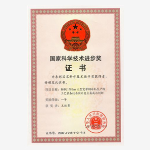 鞍钢宽带钢工艺装备自主集成与创新国家科学技术进步奖一等奖